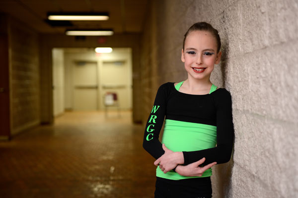 Her hard work pays off. At the winter game trials, her free routine scored 9.55. A national-level competitor who is a few years older scored 9.8.
