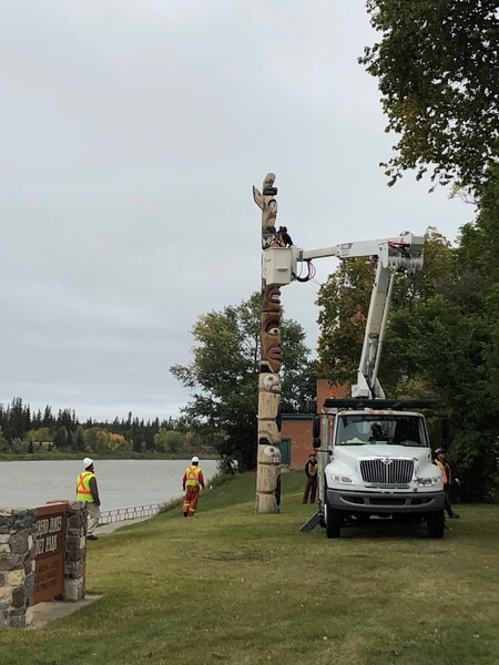 A historical landmark in the city of Prince Albert has now been removed for safety reasons. On September 9, 2019, Darlene Stonechild from Okanese First Nation drove over four hours with a 34-foot high totem pole, which her brother Dale assisted with the carving over 44 years ago.